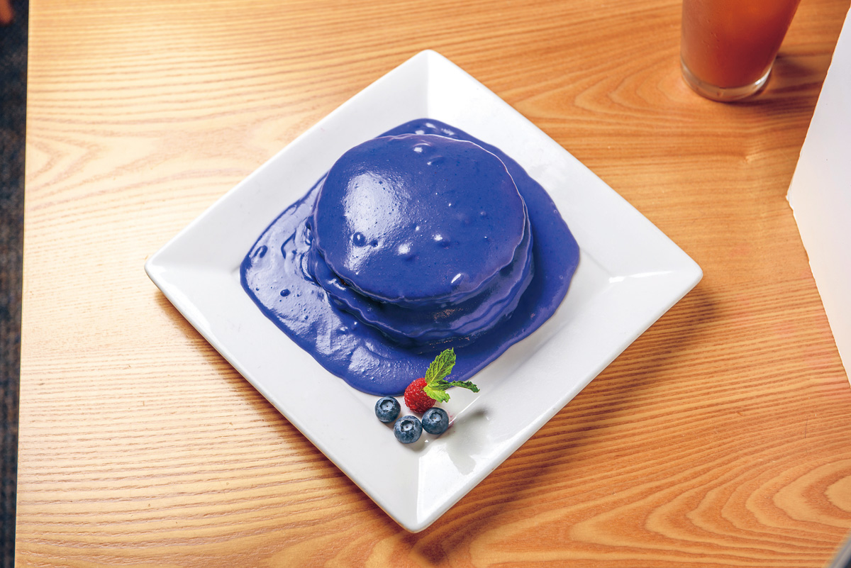 ハワイにはパンケーキの王道店のほかにも、見た目のインパクト大なカラフルパンケーキが豊富。見た目はもちろん、味も個性的なひと皿にもぜひトライ!