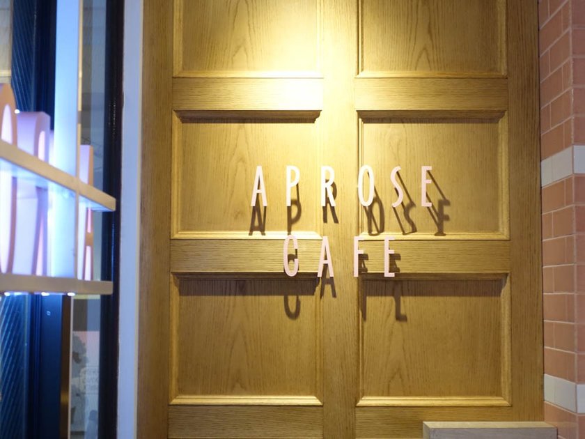お店に入るとすぐ、「APROSE CAFE」のロゴがかわいく飾られた壁があり、ここで写真を撮る方も多いそうです。