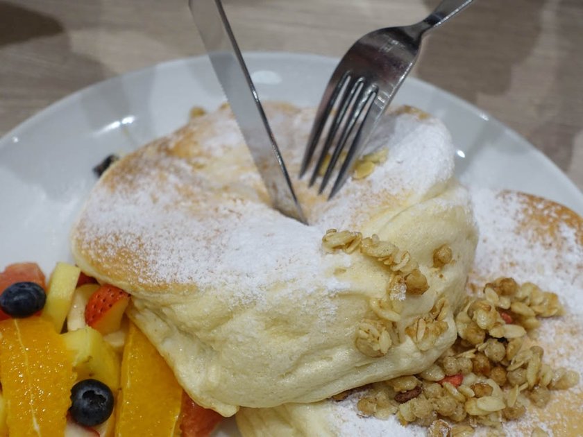 一見ボリューミーなパンケーキですが、口の中ですぐに溶けるほどふわふわなので、ひとりでもぺろりと食べられます。季節限定のパンケーキがあったり、ハーフサイズがあったりとメニューも豊富。友達とシェアして食べるのもおすすめです。