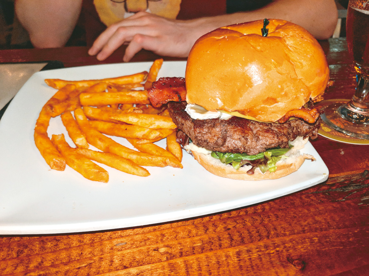 ベーコンとブリーチーズを使ったチーズバーガー$16はびーるのおつまみにピッタリ!