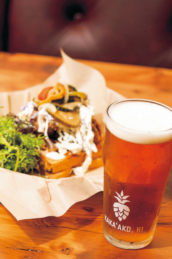 ハワイ産の素材にこだわって造られた、8種類以上のクラフトビールを味わうことができるビアレストラン。ビールのほか、自家製シロップを使うカクテルも人気なので、ビール以外も試してみて。ブロンドエール(L)$6.50は飲み口がやわらかくフードとも好相性。