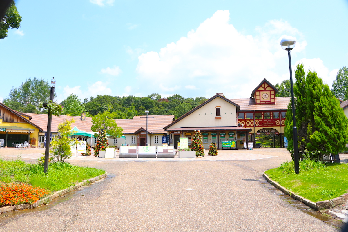 南海電車高野線「泉ヶ丘駅」で下車し、バスターミナル6番乗り場「ハーベストの丘」行きに乗って約20分。外国の田舎町を彷彿とさせる広大な敷地が、小高い丘の上に広がっています。
