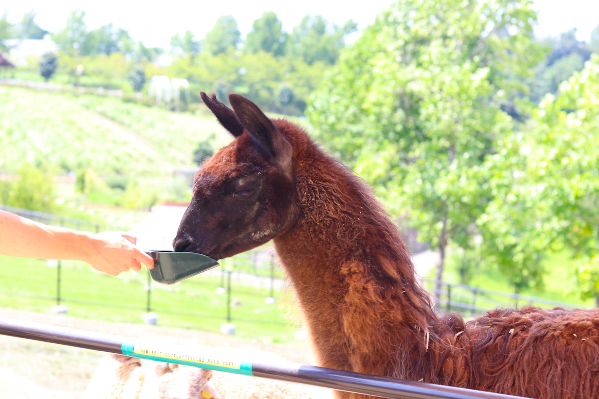 ヒツジやヤギ、ラマなどがのんびり暮らす様子も見学可能。おやつをあげれば喜んでぺろりとたいらげてくれます。どの子もみんなマイペースで、見ているだけで心が和みます!