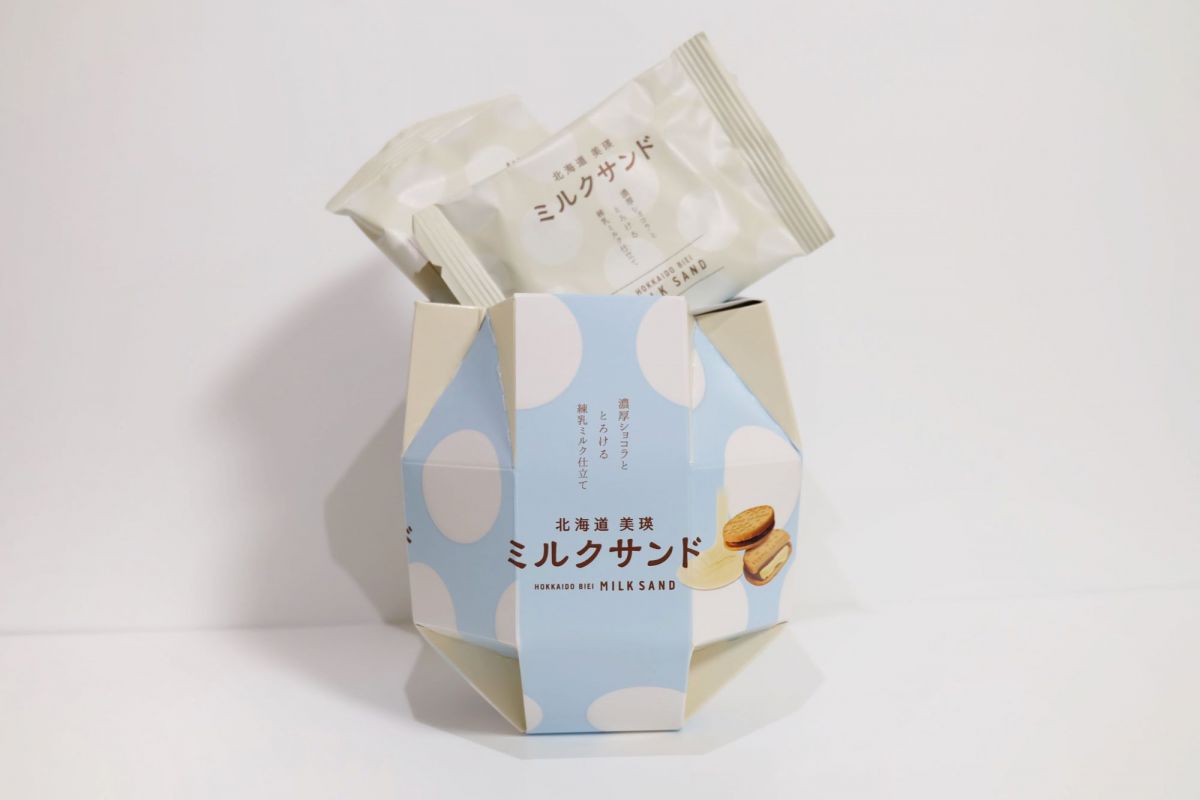 気軽に渡せるお土産としておすすめなのは、こちらのミルクサンド。サクッと仕上げた小麦の風味豊かなクッキーにクリームが挟まっています。4枚入りのパッケージはかわいらしい球体の形。