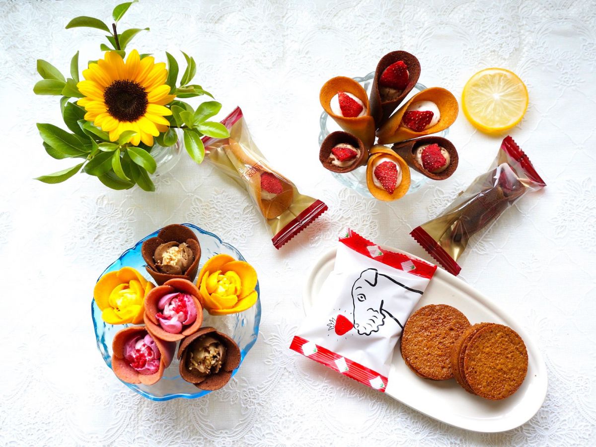 かわいいチューリップと華やかなローズがひとつになった「チューリップローズ」。繊細なラングドシャクッキーで作られたチューリップのなかに、とろけるホイップショコラのローズが咲いています。