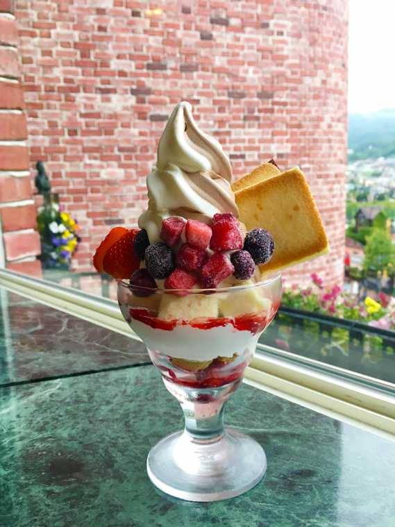 夏にぴったりの「白い恋人ソフトクリーム」はマストで味わいたいところですが、ほかにもいろいろ食べたいし…。そんな欲張りなあなたにおすすめなのが、ISHIYA人気のスイーツたちを一度に食べられる「白い恋人パフェ(756円)」です。