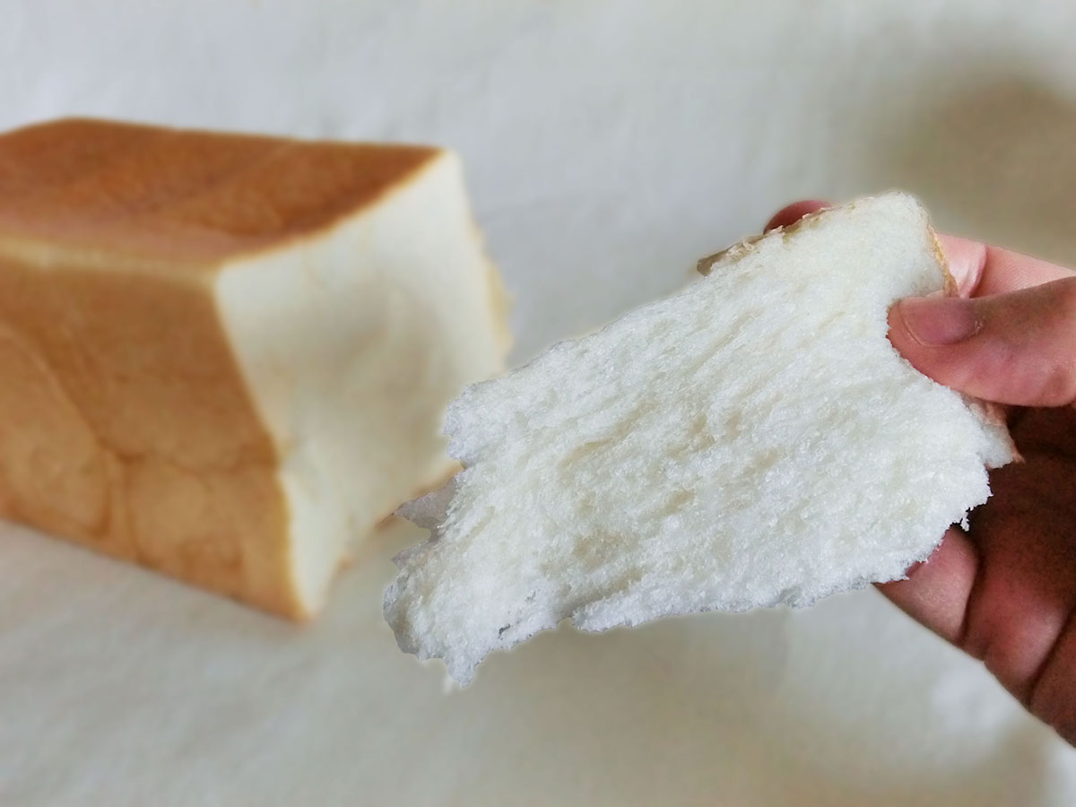 薄めの耳はパリッと焼き上がっているけど、噛むとやわらかく、真っ白な生地はふわふわで、口に入れるともっちり・しっとりさを堪能できます。