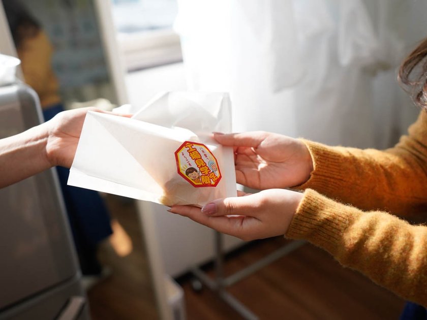 パンやクリームのいい香りが充満する工場を後にする頃には、お腹も空いているはず。そんな工場見学ツアーの最後には「くりーむパンの包装体験」が。