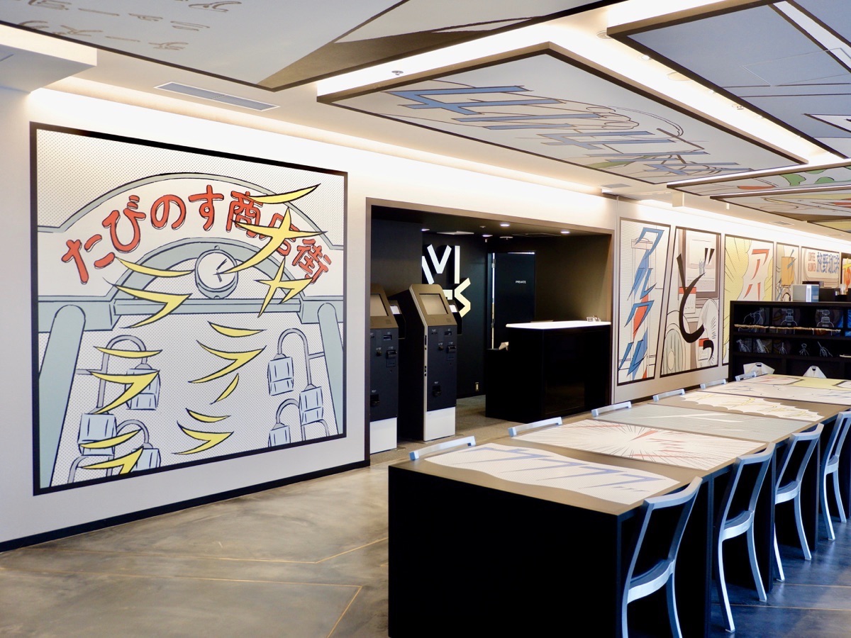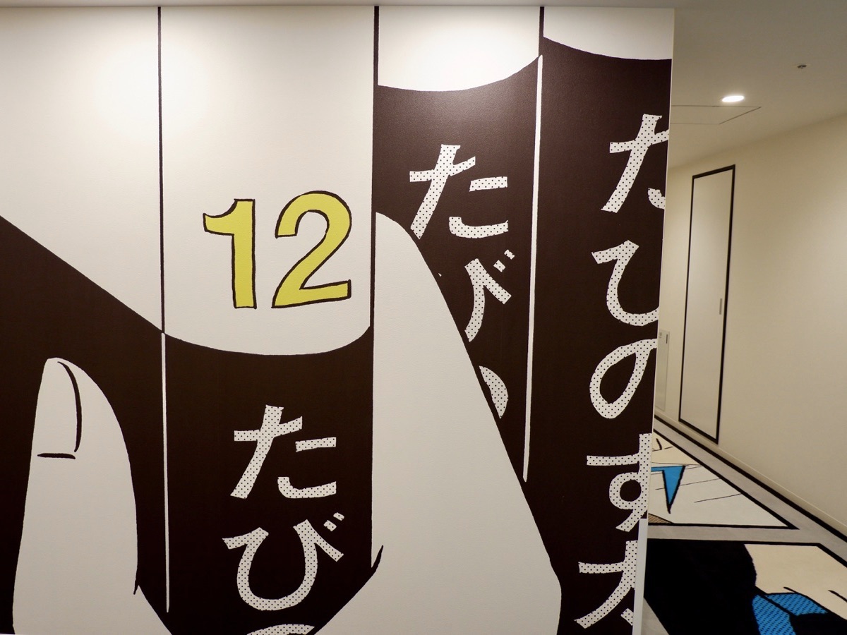 こちらは日本のカルチャーを代表する“漫画”をテーマにしたデザイン空間が特徴。エントランスには、ゲストが機内で過ごしているかのような漫画が描かれており、着いた瞬間から写真を撮りたくなります。