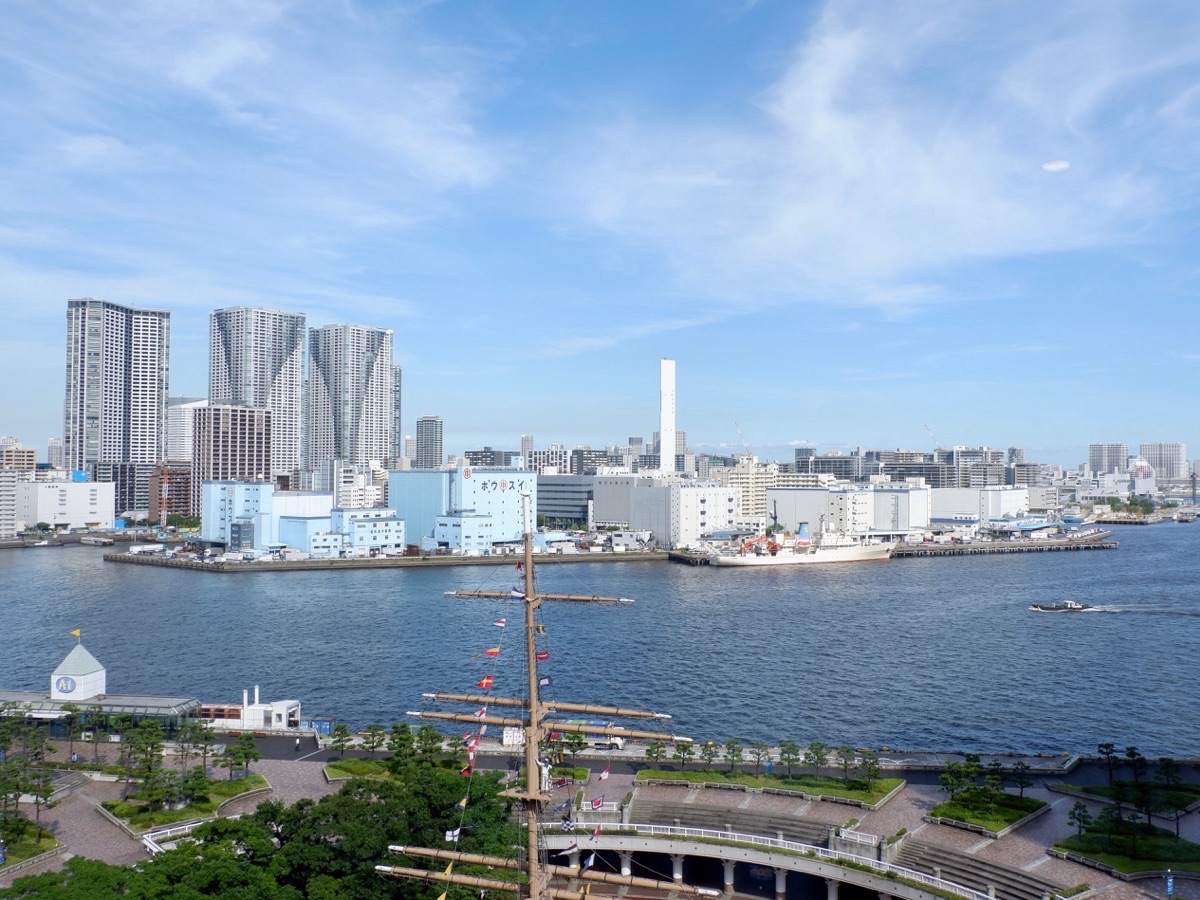 最上階13階の一部の客室からは、竹芝客船ターミナルや月島埠頭などが見渡せます!リーズナブルな価格で、こんな素敵な景色を眺められるのはうれしいですね。
