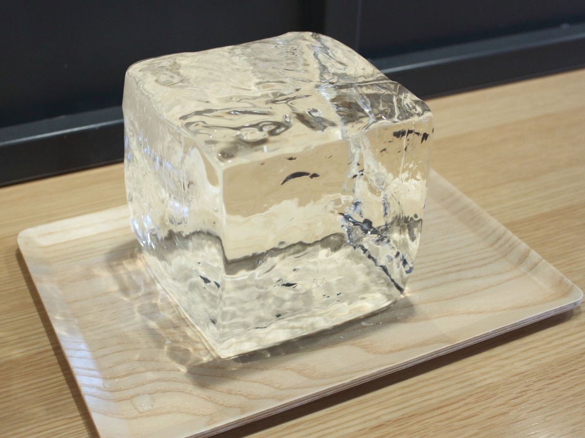 「おいしい氷屋」は、昭和21年創業の老舗製氷メーカー・九州製氷が手掛けているお店。かき氷に使われる氷にもかなりのこだわりがあり、不純物を取り除いた「純氷」と呼ばれる氷が使われています。99.9%の純度を誇るオリジナル氷「博多純氷」は、向こう側が見えるくらいのクリア感。