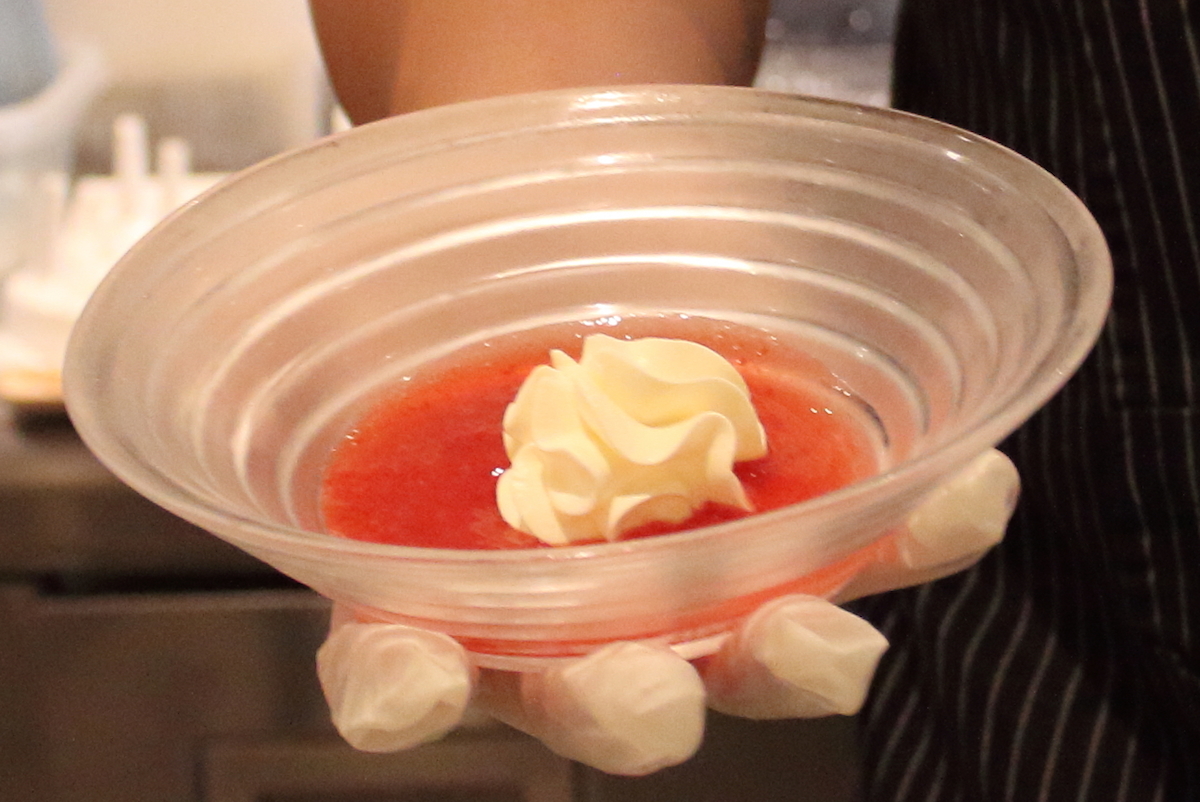 かき氷を作る過程には、こんな秘密も。最後まで楽しんでいただけるようにと、器の底にもソースやクリームが入っているんです!