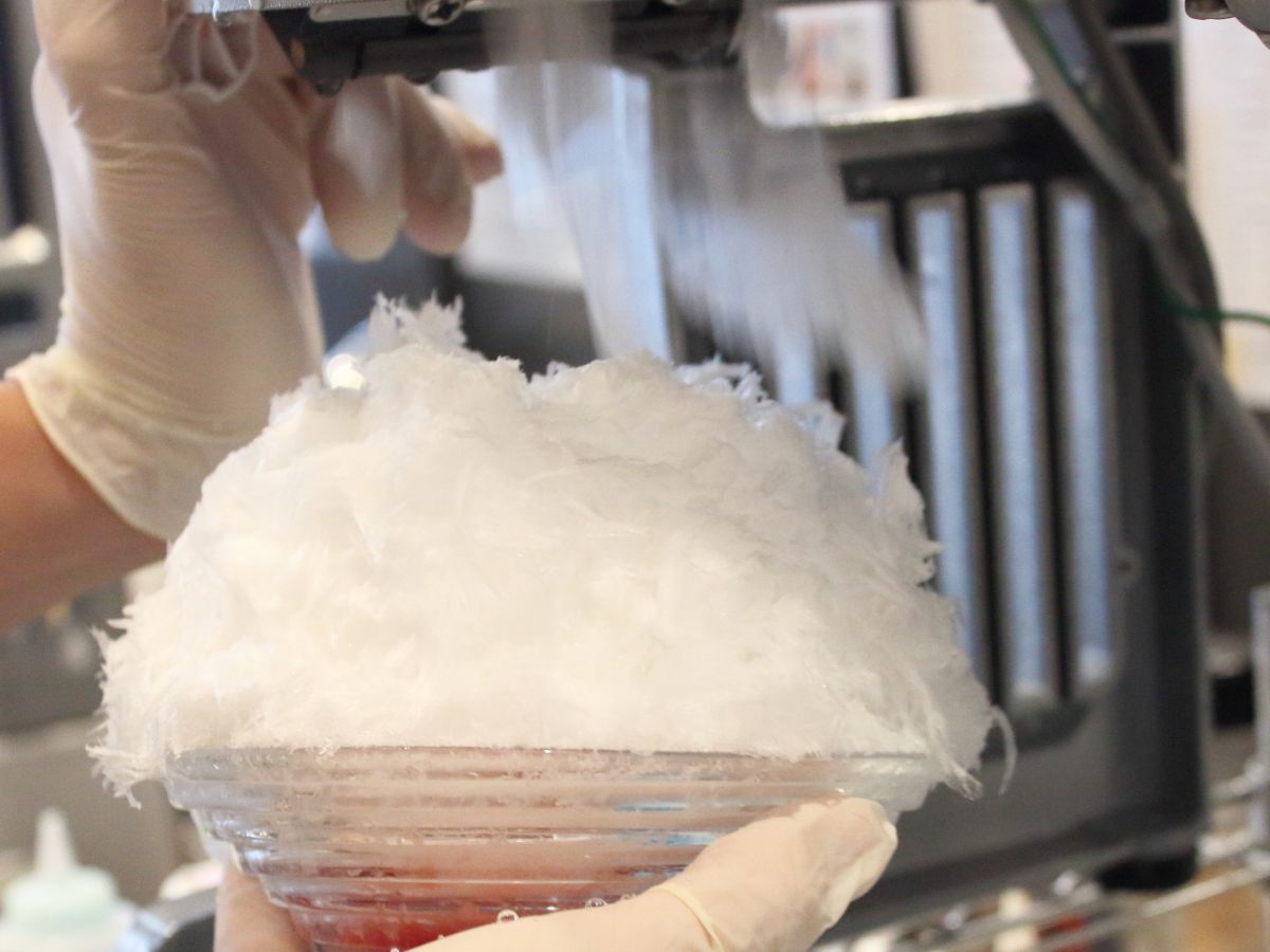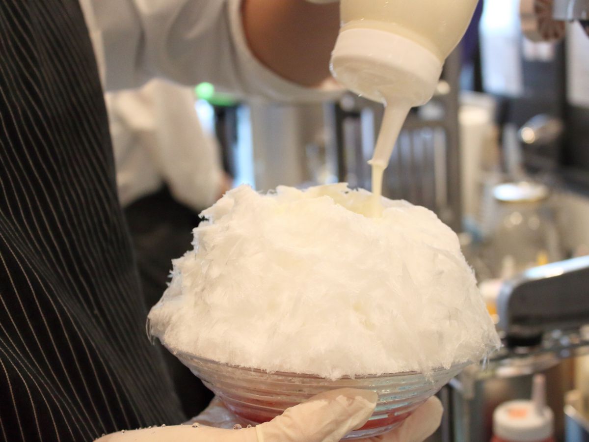 純度の高い氷が使われていることで、ふわふわの氷になるのだそう。口に含んだときに舌の上で溶けてしまうほどで、頭にキーンときづらいのも特徴!雑味のない氷は、ソースのおいしさをより一層引き立ててくれます。