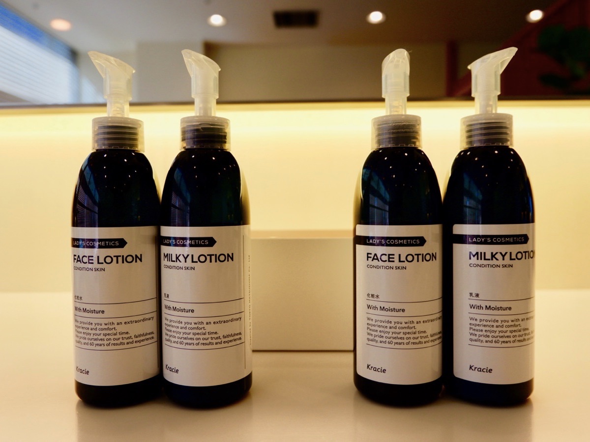 洗い場には天然由来のオイルが配合されたシャンプー、コンディショナー、ボディソープだけでなく、クレンジング、洗顔料も用意されています。