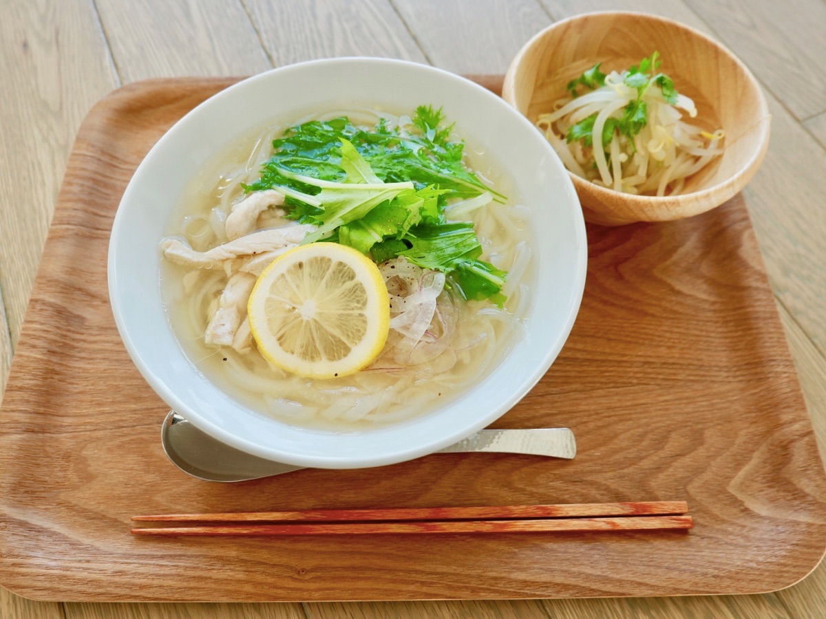 ランチメニューで人気なのは「ヘルシーチキンフォー」(900円)。化学調味料を使用してないスープに国産の柔らかな蒸し鶏と三浦野菜がたっぷり入ったヘルシーな一品です。こちらのフォーは、グループ会社の「COMPHO」で取り扱っているものなんだそう。