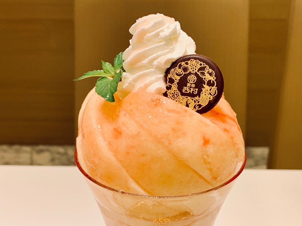 渋谷駅ハチ公口から徒歩1分、スクランブル交差点を渡ったところにあるフルーツパーラー「渋谷西村フルーツパーラー道玄坂店」。この店のおすすめは、6月下旬から9月上旬の期間限定で提供される「特選桃パフェ」です。完熟した桃だけを使った極上の桃パフェ。自分へのごほうびとして、おすすめです。