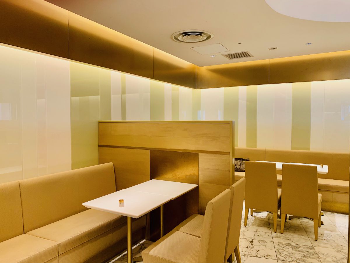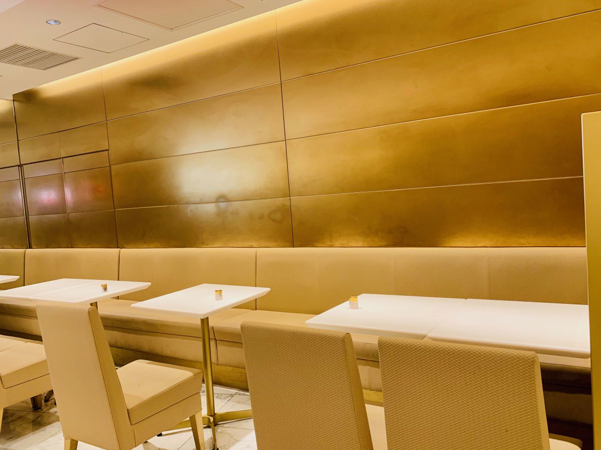 ゴールドとブラウンを基調とした、落ち着く店内。