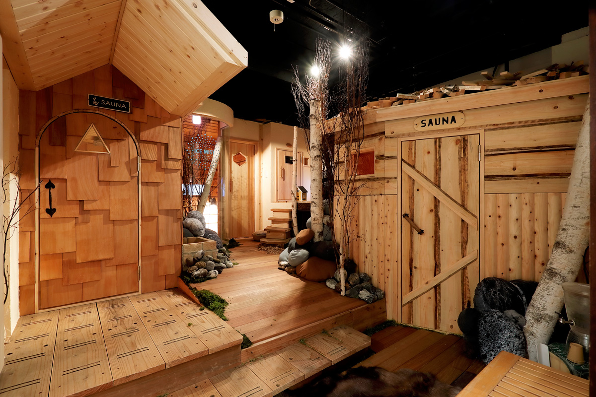 「Sauna Lab」には、「FOREST SAUNA」と「LAPIN MOUNTAIN」の2種類のサウナルームがあります。どちらも田舎の山小屋をイメージしたこぢんまりとした空間で、優しい木の香りがフワリと漂います。
