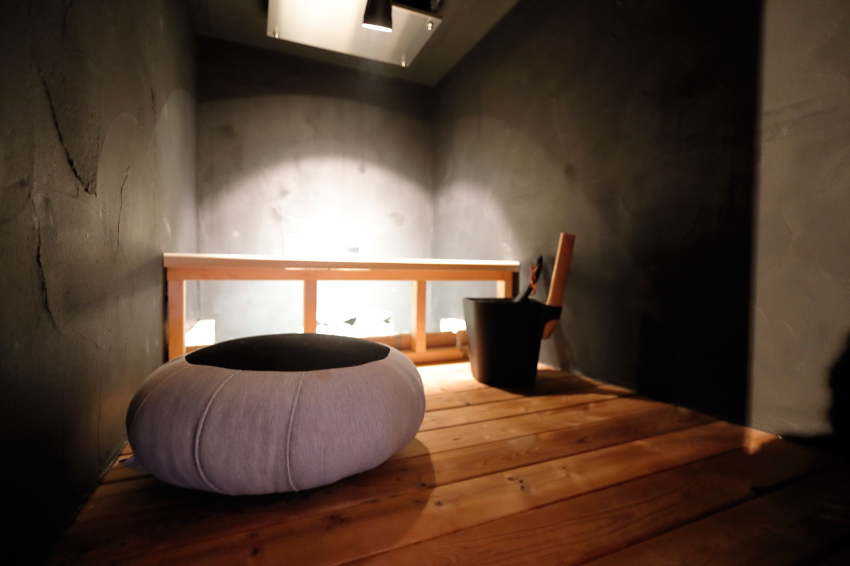 特におすすめしたいのが、1畳ほどしかない個室の「瞑想サウナ」。薄暗い空間で座禅を組むことで、日常の喧騒を忘れて心身ともにリフレッシュすることができます。