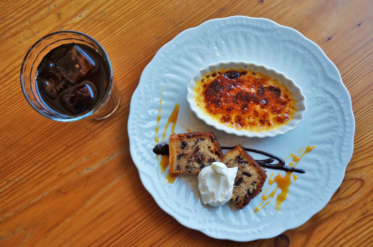 今回は「クリーム・ブリュレ&ダークチェリーのケーキセット」を頂きました。パリパリのカラメルの下には濃厚なカスタードプリン。バニラの香りがほのかに香り、ねっとり滑らか。チェリーケーキはビターな大人な味。全体的に甘さ控えめなので、ぺろっと食べられます。