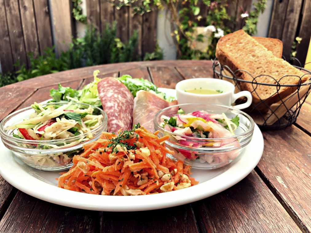 カフェには、インナービューティースペシャリストとして数々のメディアでも注目される関口絢子さんがプロデュースするメニューもあり、人気の理由となっています。「おまかせヘルシーデリプレート」(1250円)は美肌に役立つ栄養がたっぷり。毎朝市場から直送されてくる野菜をメインに、1日に必要な野菜摂取量の1/2分を食べられて、ボリュームも満点。