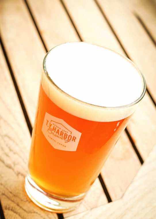 店内には常時6種類のクラフトビールが用意されています。こちらは、淡いブロンズ色の「ペールエール」フルーティな味わいを持ちながらホップの苦みがバランスよく混ざり合った「T.Y.HARBOR BREWERY(ティー・ワイ・ハーバー ブルワリー)」の定番ビールです。
