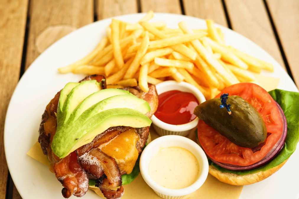こちらは1番人気、「ティー・ワイ・ハーバー バーガー」(1700円〜)。見てください、この圧倒的なボリューム感!!バンズにどっしりとのった170gのパティは、ひと口いただくと、ジュワッと肉汁が溢れ出し、ビールがすすむこと間違いなしのおいしさです。