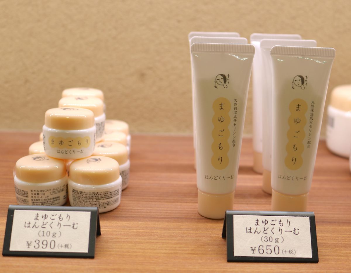 魅力的な商品がいっぱい並んでいますが、おみやげの一番人気は「まゆごもり」シリーズの「まゆごもり はんどくりーむ」だそう。シルクの天然保湿成分「セリシン」が、手肌をまゆのように優しく包み込み、指先までしっとり。お値段も手頃なので、女友達への京都みやげにぴったりです。