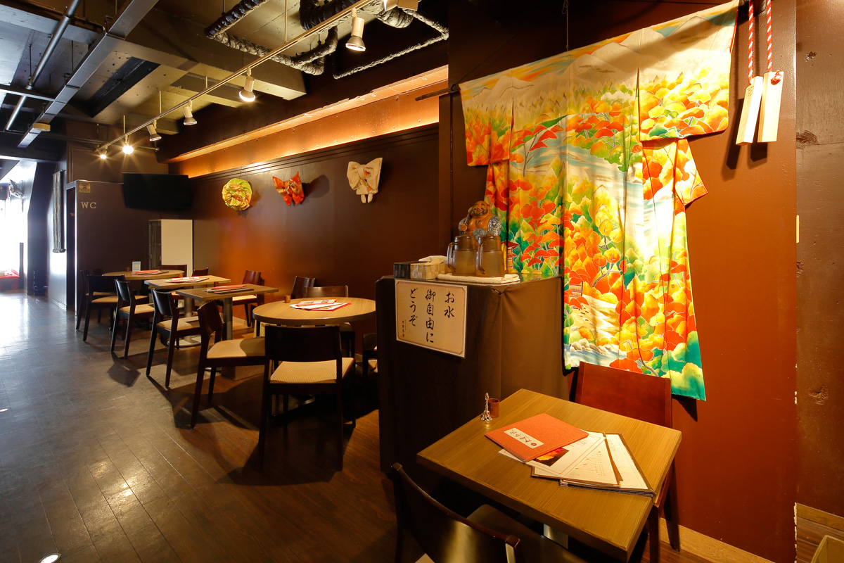 大須のアーケード街・万松寺から1本入った裏門前町通にあるのが今回のお店「吾妻茶寮」。プロデュースしているのは明治45 年創業の和菓子店「吾妻茶寮」の4代目。色鮮やかな着物や帯をアレンジした装飾からも、伝統と新しさが感じられます。