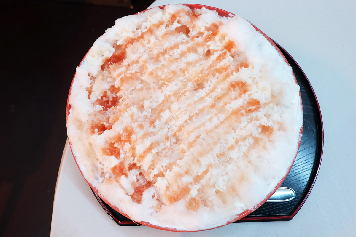 「しおきゃらめる」(写真)や、「こうちゃみるく」、「てらみす」、「でらまっちゃらて」など、約10種類のかき氷が全品800円で食べられます。上から見てもこのボリューム…!それなのにひとりでもペロリと食べられる軽い味わいが魅力です。