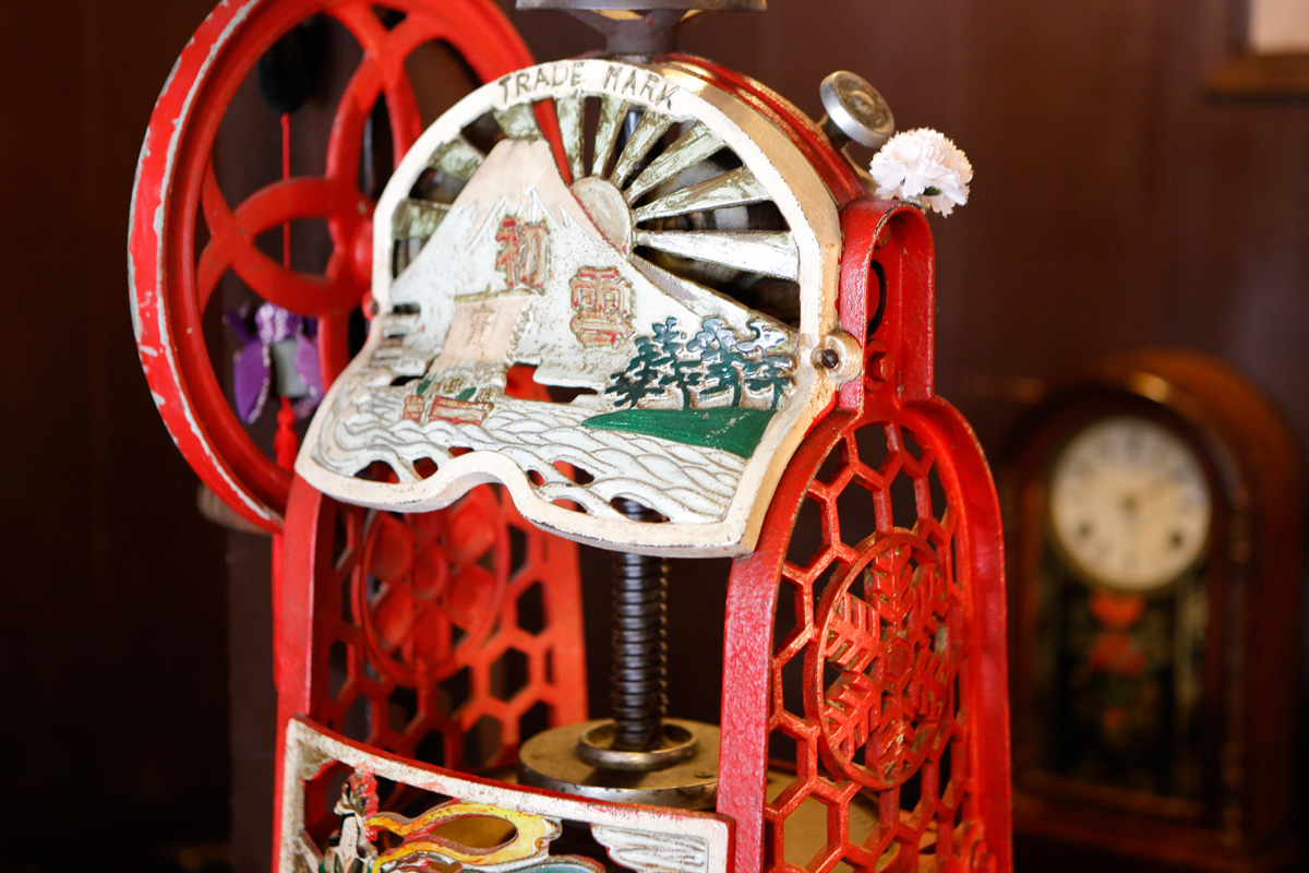 店内を見渡すと、年代物のカメラやアンティークの時計などがたくさん見つかります。実はご主人、古物商の免許を所有するほどの骨董品マニア。レトロな空気が漂う店内で かき氷を頬張る、“ニッポンの夏“を味わうことができますよ。