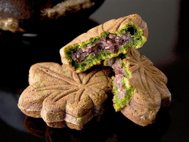 お茶専門店が作る、もみじまんじゅうの抹茶味はおみやげにぴったり