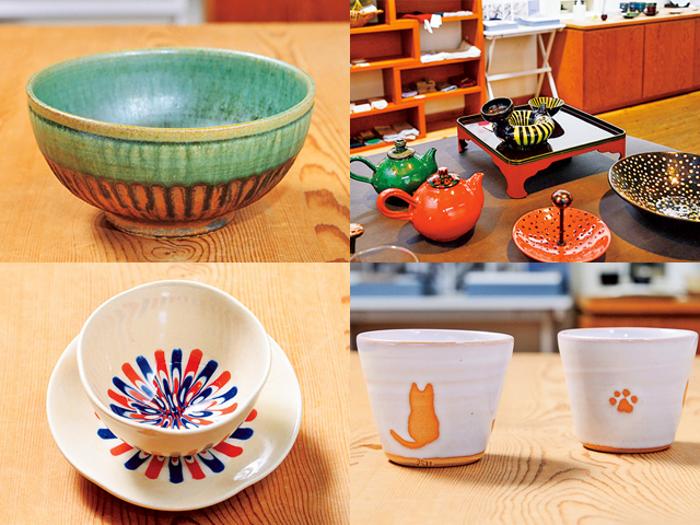 萩を代表する大御所から新進の若手まで、たくさんの作家さんの作品がそろうギャラリー&ショップ。素朴な風合いのもの、キュートな絵柄やカラフルな色合いがプラスされたものなど、いろいろな萩焼が並べられ、見ているだけで楽しい気持ちになります。ギフトにするのはもちろん、お手頃価格のものもあるので、普段使いできる自分のための器を探してみましょう。
