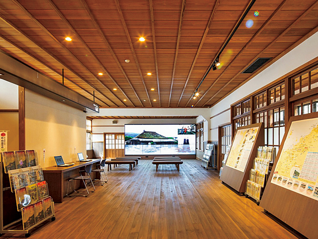 幕末の志士ゆかりの萩藩校明倫館があった跡地に、昭和10年(1935)に建てられた旧明倫小学校の木造校舎。現在は、観光インフォメーションセンターやレストラン、幕末ミュージアムが設置されています。木造校舎としては日本最大級といわれ、外観も館内も木造の造りで趣があります。木の質感や建築の美しさは、思わず見とれてしまうほどです。