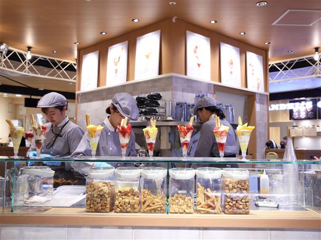 「LUCUA FOOD HALL」内にあるフルーツパフェの専門店。老舗果物店が手がけているだけに、取り扱うフルーツのおいしさは折り紙付き!たっぷりのフルーツに彩られたパフェにほれぼれして見入ってしまいます。23時までオープンしているので、お酒を飲んだあとの締めパフェが楽しめるのもポイント。アルコールで疲れた体に、フルーツとクリームの甘さがすーっと染みていきますよ!