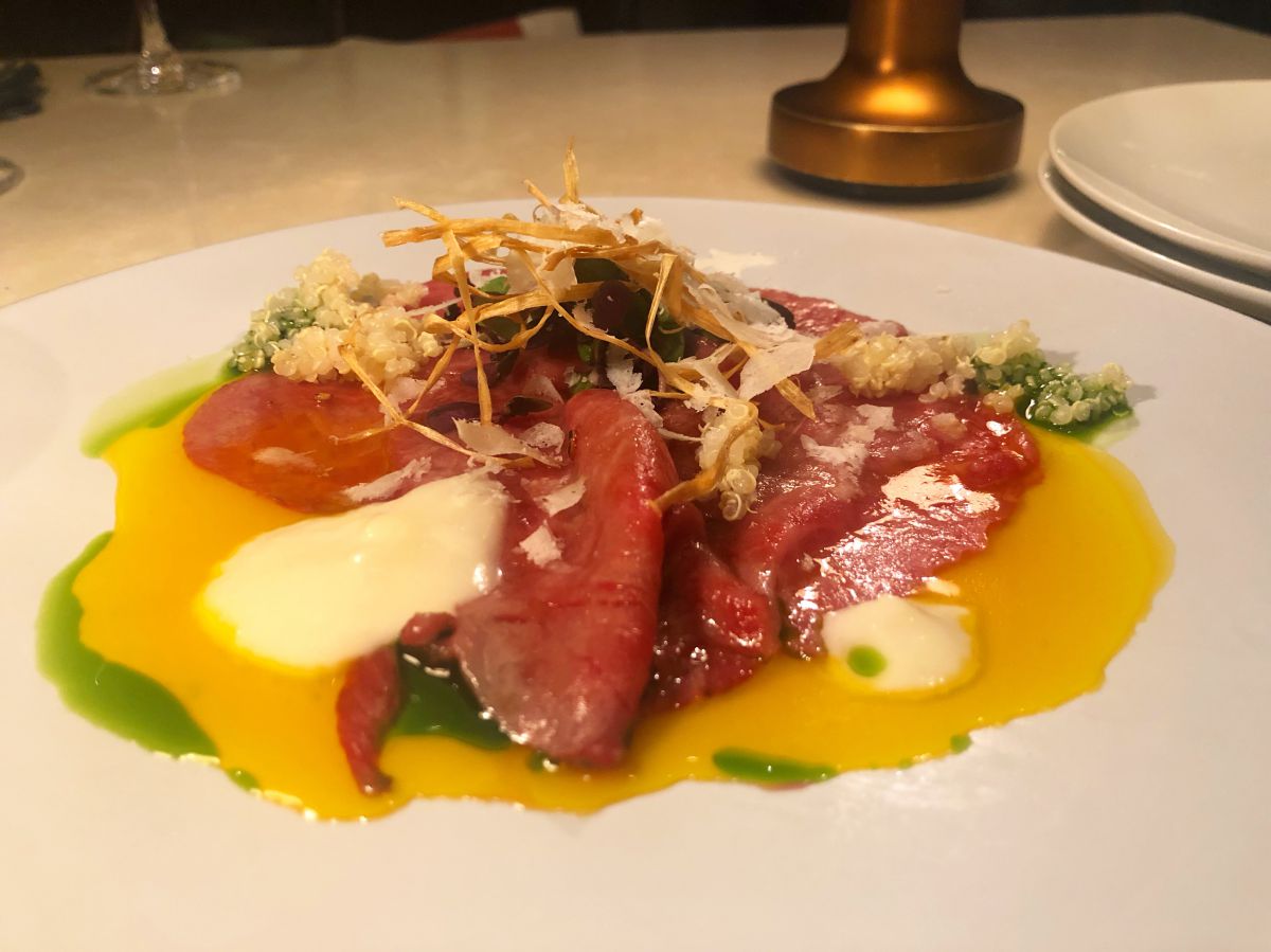 これが想像以上に完成度が高く大満足。牛肉のレアな食感と、絶妙に混ざり合った複数のソースのおいしさがベストマッチで、ペロリと食べてしまいました。