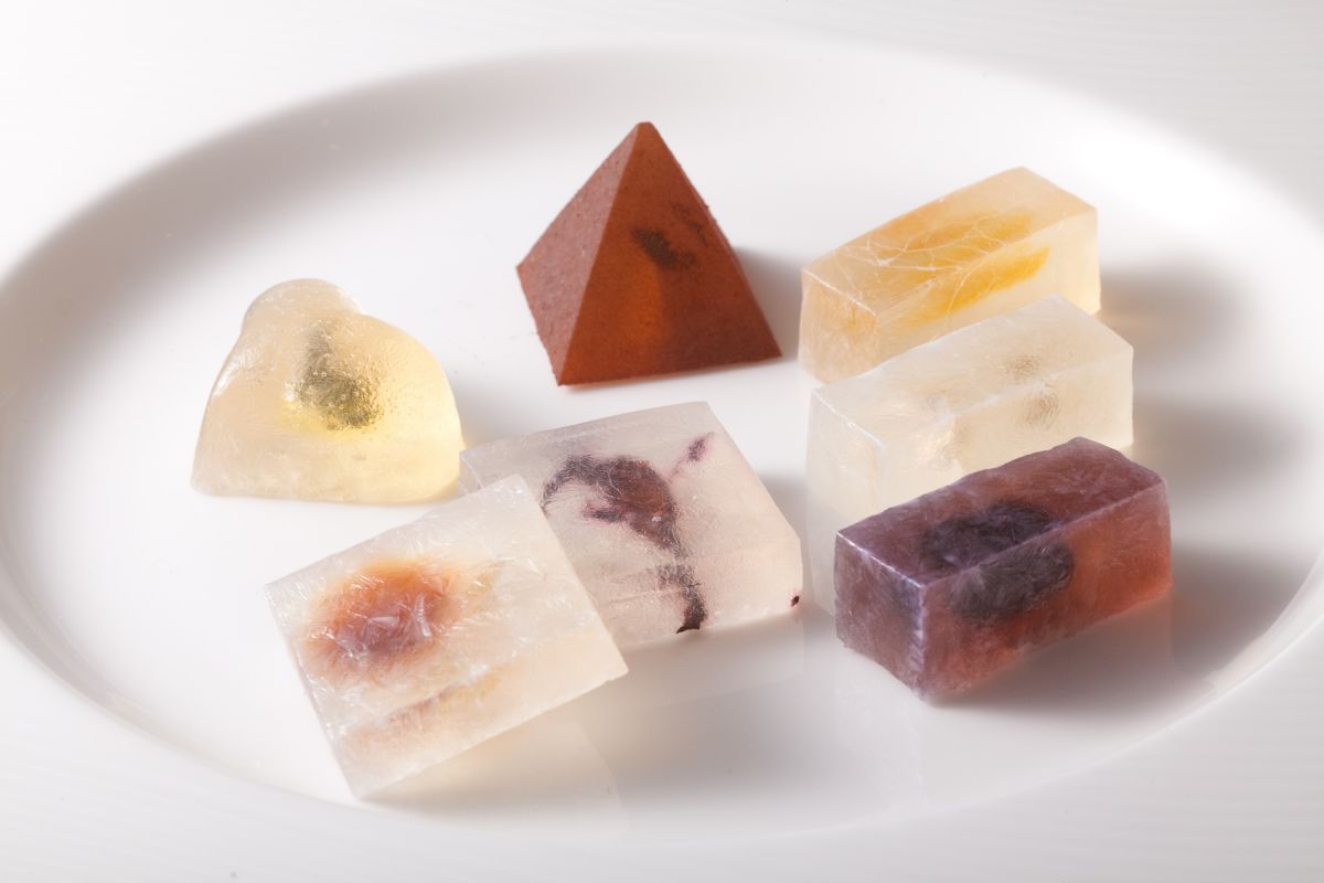 和菓子の常識をくつがえす、琥珀糖に封じ込められた奇想天外な素材たち