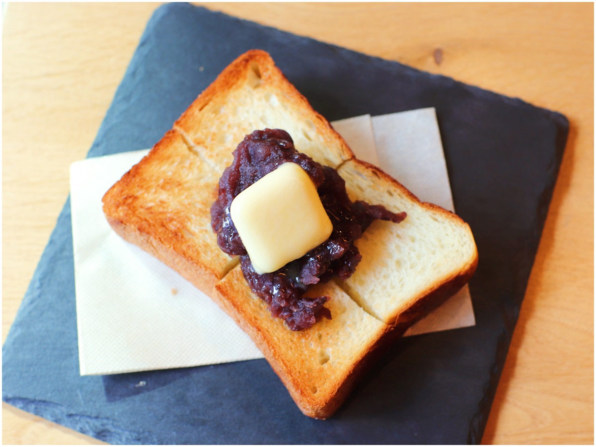 また、合わせておすすめなのが「バタートースト」「チーズトースト」「あんバタートースト」の3種類があるトーストメニュー。今回は「あんバタートースト」(税込380円)をチョイス。