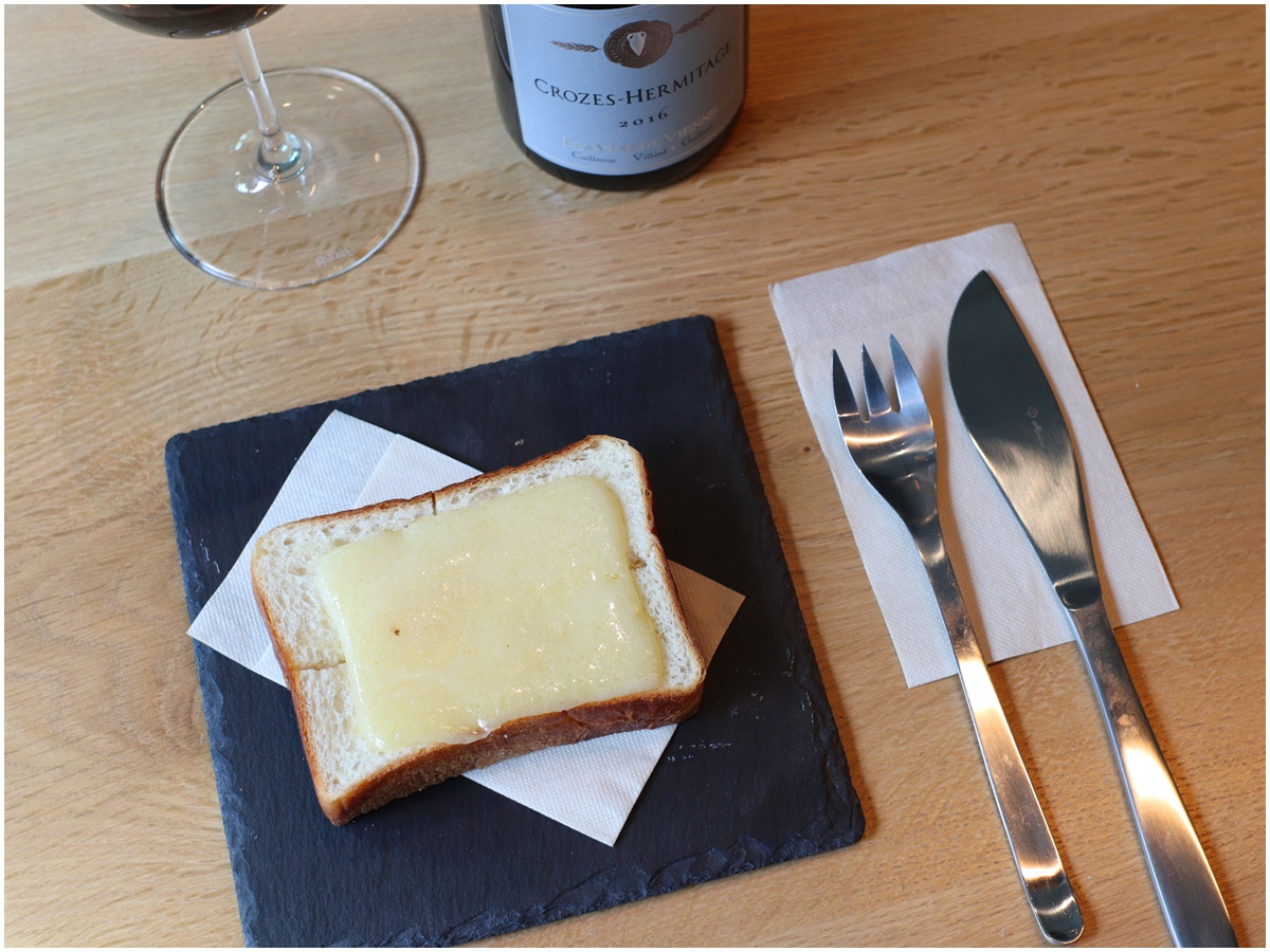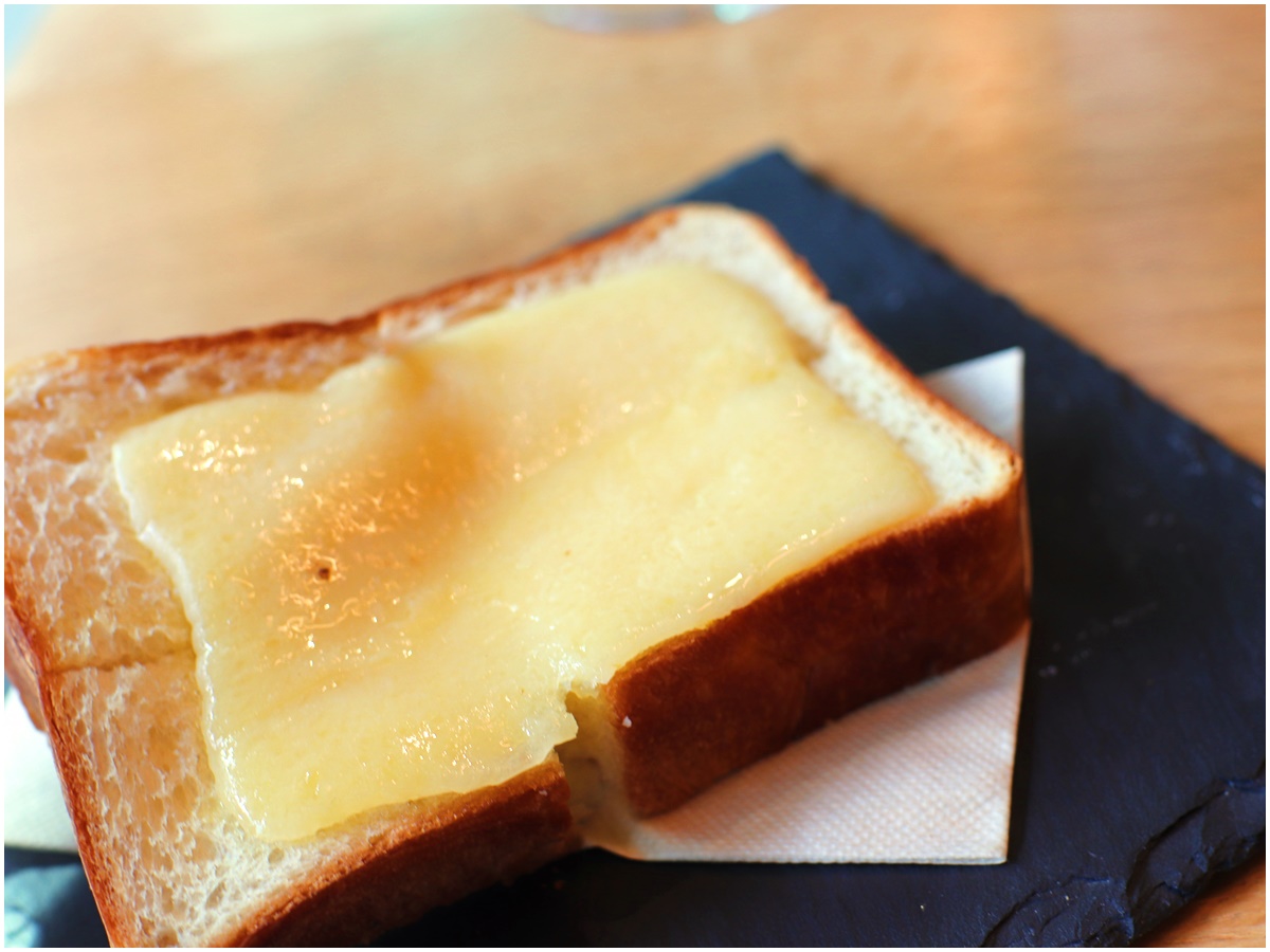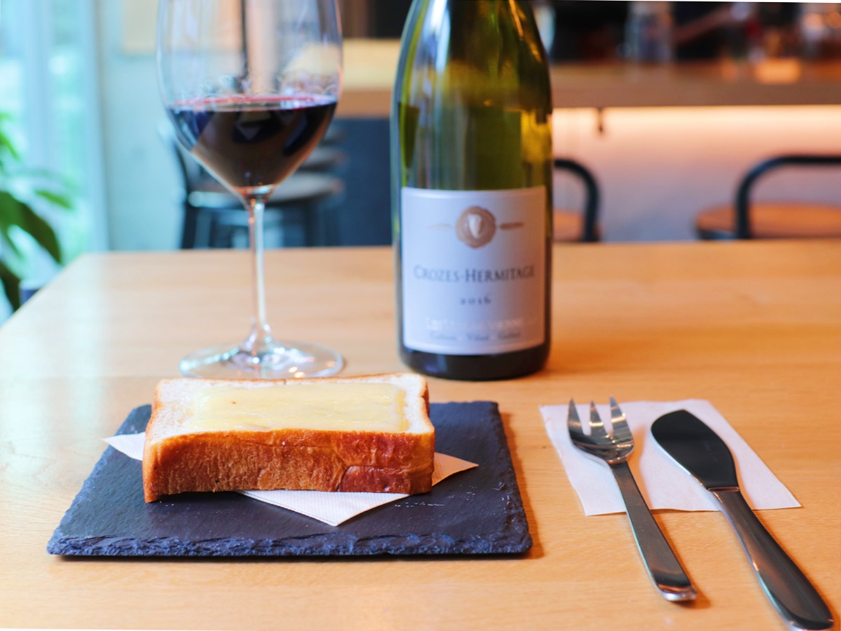 合わせていただいたのは、サクサクもっちりな「チーズトースト」(税込330円)。ワインとの相性抜群です!