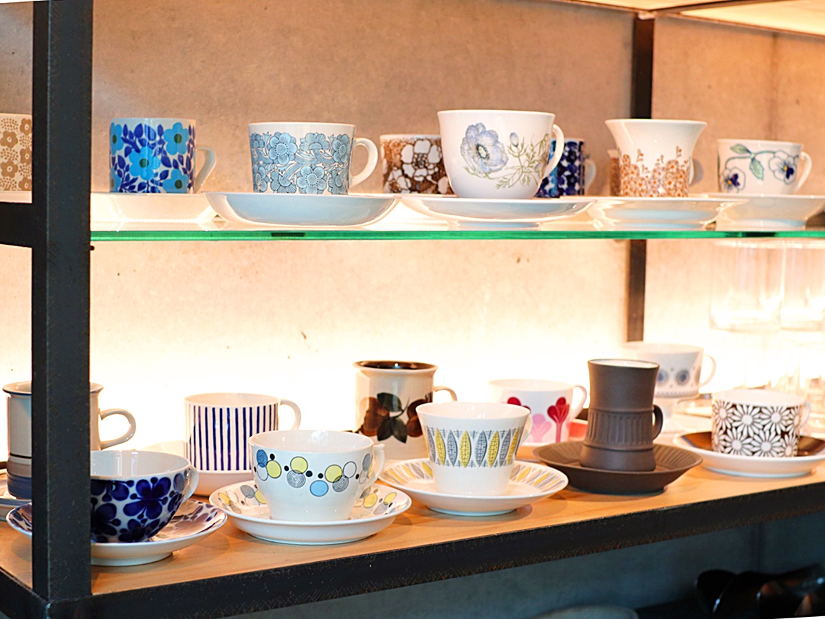 店内の棚には、いろんな種類の素敵な北欧アラビアのアンティークカップ&ソーサーが並んでいました。