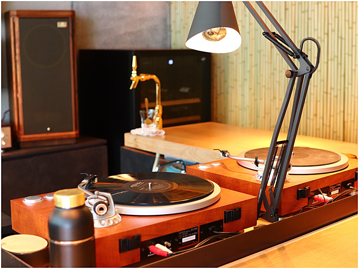タンノイのスピーカーから流れる上質な音楽は、居心地のよさをさらに高めてくれました。
