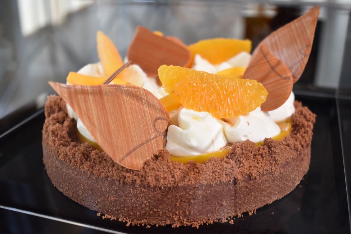 夏のイタリアをイメージし、シナモンとオレンジのクリームで地中海を表現したタルトです。
