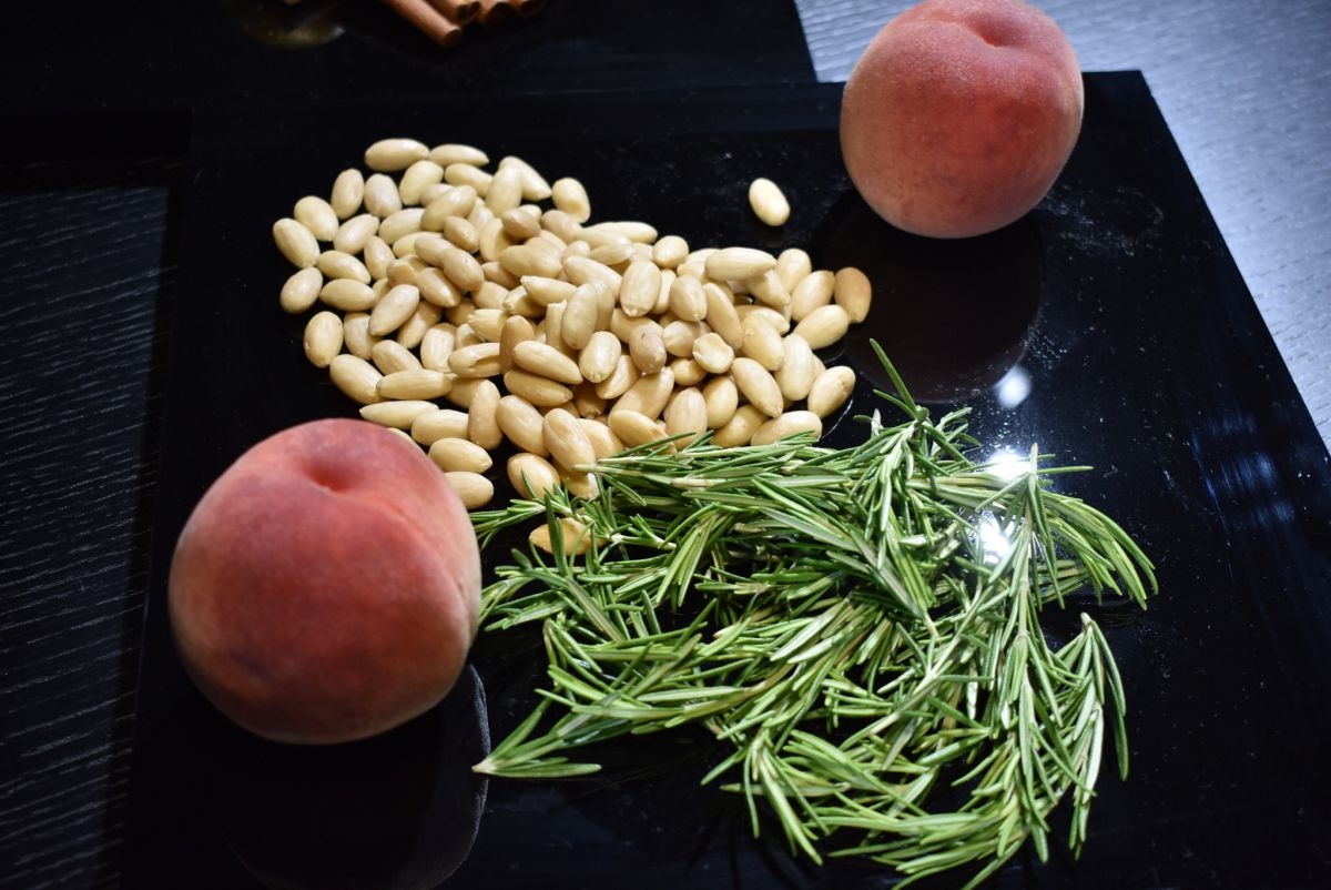 桃の香りやテクスチャーにこだわり、低温で加熱して甘みや香りを引き出してから調理するのだそう。