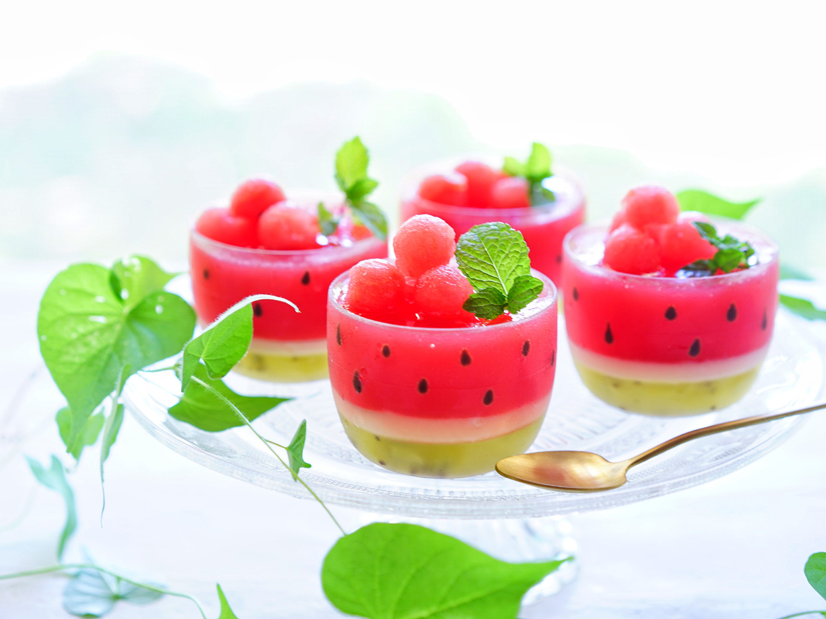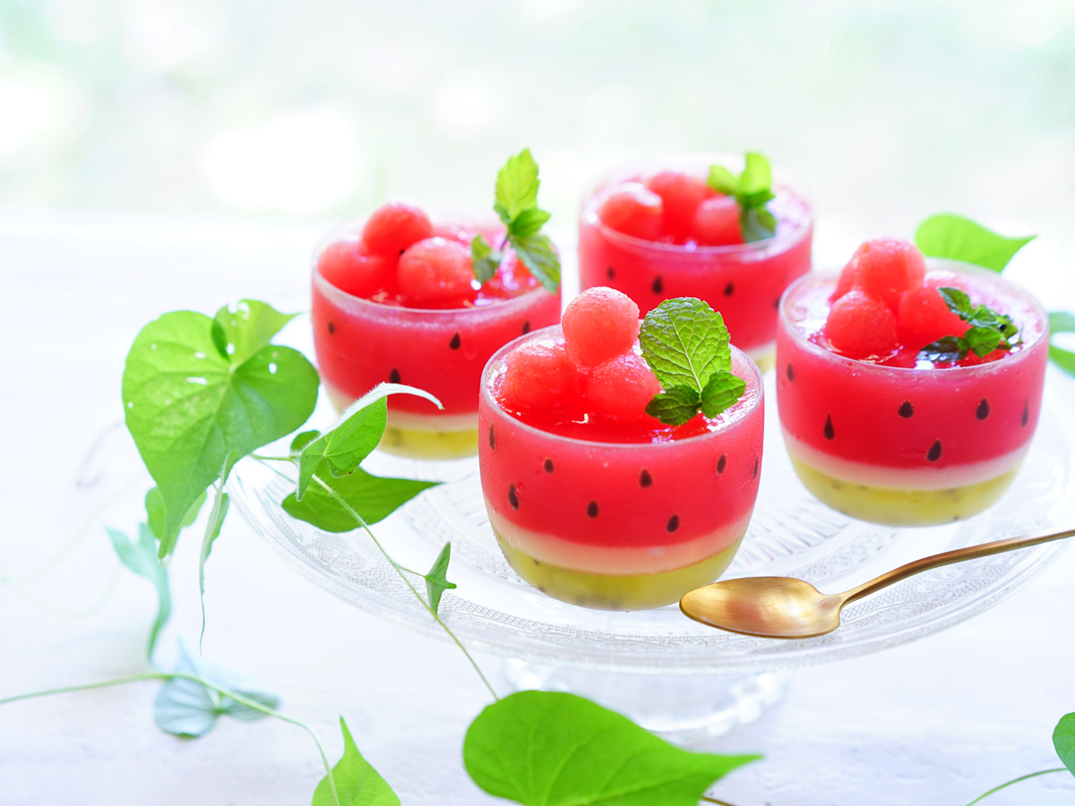 見た目もかわいく、さっぱりちゅるんと食べられるスイカゼリー。