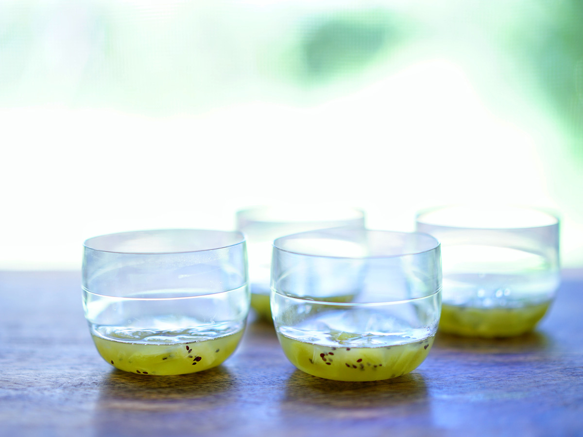 光が透けて、涼しげに見えませんか?ゼリーを真ん中に配置してももちろんいいのですが、片方に空間を作ることで、奥行きが出ます。