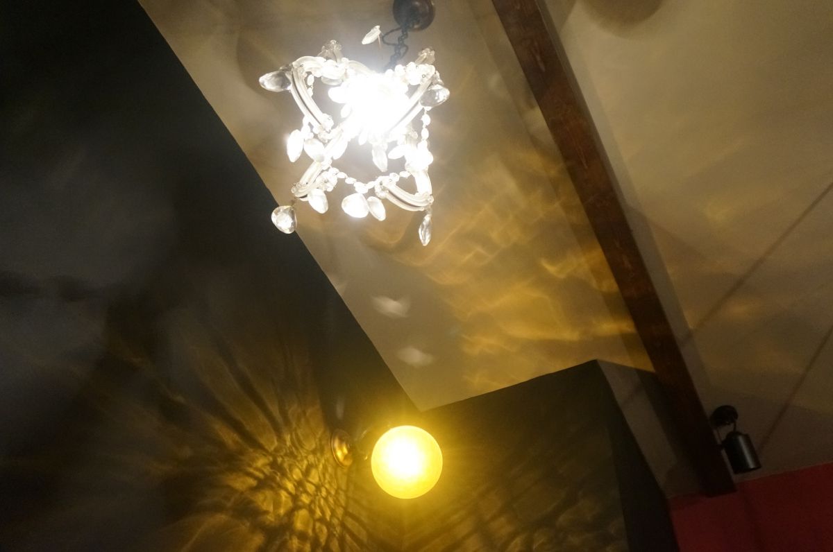 一面を真っ黒な壁で囲われた、どこか幻想的な空間です。小さなライトがぼんやりと店内を照らし、落ち着きのあるとってもいいムード。