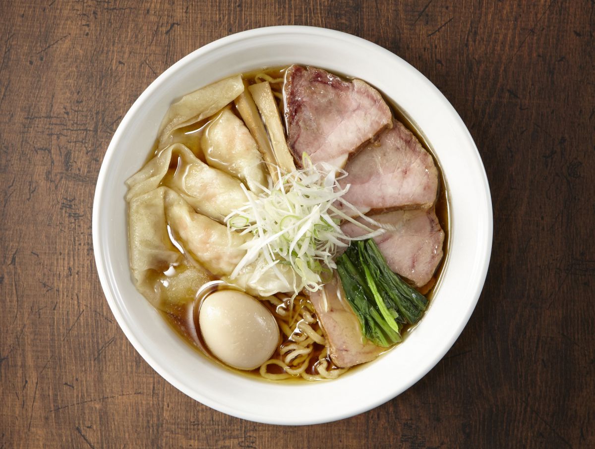 初出店の栃木県那須塩原『手打 焔(ほむら)』は、開店前から行列ができる注目のラーメン店。軍鶏をベースにしたすっきりとした旨味の醤油スープと手打ち麺が相性抜群。「小田急限定特製海老ワンタンメン」1380 円は、手作りのエビワンタンとだわりの燻製チャーシュー、玉子をトッピングした会場限定メニューです。