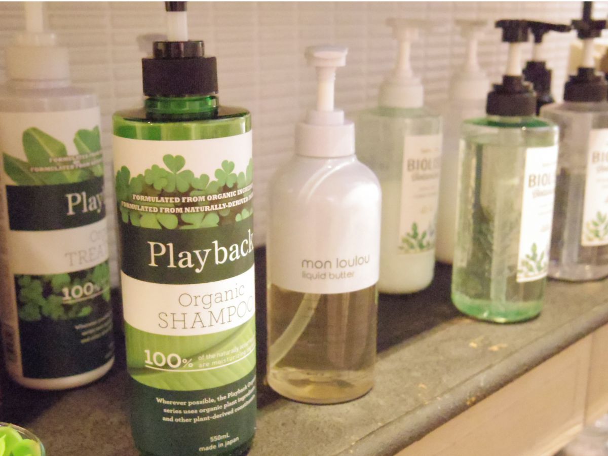 客室には使い心地のいい上質なアメニティが設置されていますが、フロントの脇の棚にはシャンプーバーも用意。こちらでお気に入りを選んで客室に持ち込むことも可能です。