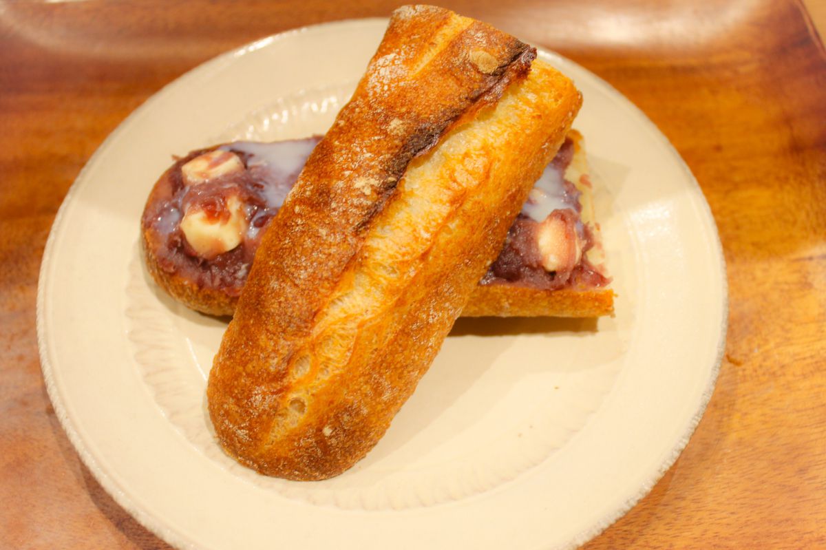 よく見かけるあんこ系のパンとは違う、ハードなバゲットに挟まれたこの「ひやあつ、あんバター」。小さく切った無塩バターが口の中でゆっくりととろけます。これは最高に贅沢なおやつですね!