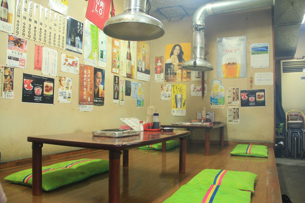 レトロな風貌が目を引く、赤い看板が目印の地元で愛される焼き肉店。店内に入ると炭火焼肉の香ばしい香りが漂い、食欲をそそります。肉の旨みを最大限に引き出す、七輪での炭火焼で味わうスタイルです。